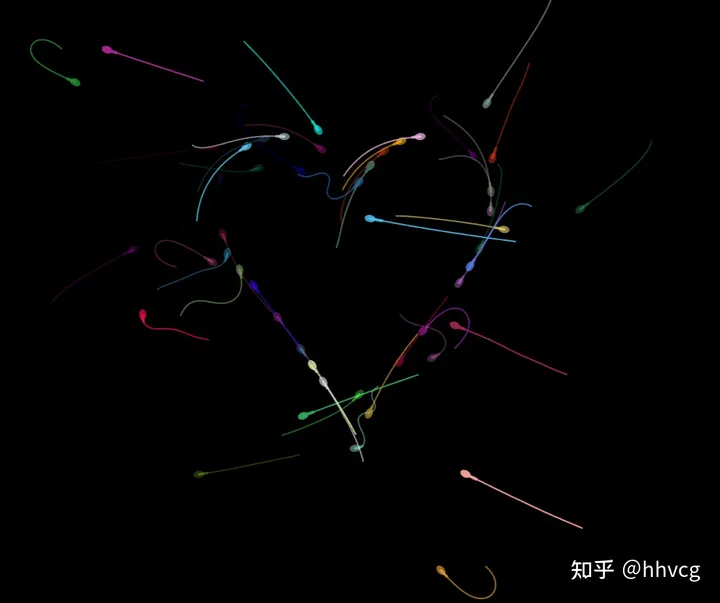 蹦迪版的效果如下,其中的每个蝌蚪实例的颜色都是帧数级的在变化: